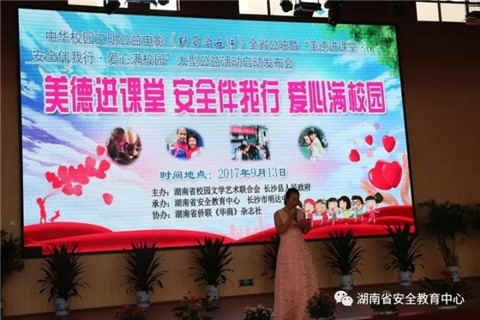 2017年9月13日,在长沙市明达中学,举行了中华校园文明公益电影《野百合女孩》湖南首映式暨“美德进课堂、安全伴我行、爱心满校园”大型公益活动的启动发布会。