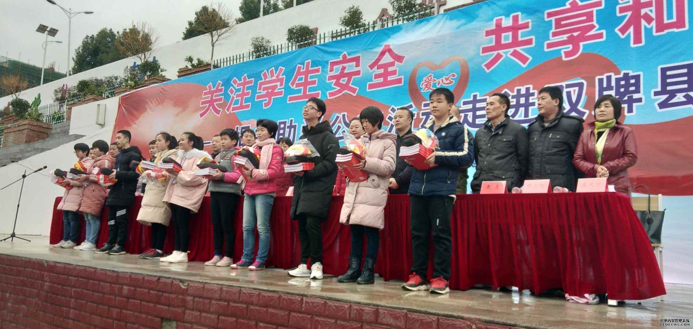 启动仪式上,爱心企业向在校学生捐赠《中小学生安全预防与自救手册》2500余本,部分爱心企业家和爱心人士向优秀学生代表发放了奖学金和奖品。