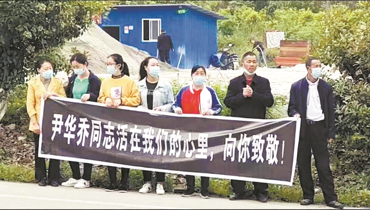 4月14日,鳌头幼儿园20多名老师自发组织了一场追悼会,老师们用“尹华乔同志一路走好,向你的精神学习!”“尹华乔同志活在我们的心里,向你致敬!”等横幅,为尹师傅送行。幼儿园园长唐军在悼词里写道:“我园痛失一位好家人,鳌头幼儿园痛失一位好朋友,我痛失一位好兄长。”