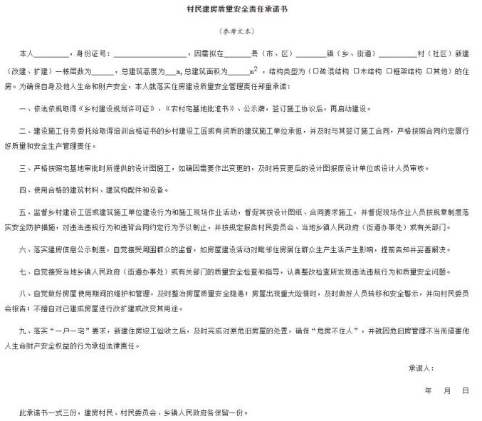 村民建房质量安全责任承诺书