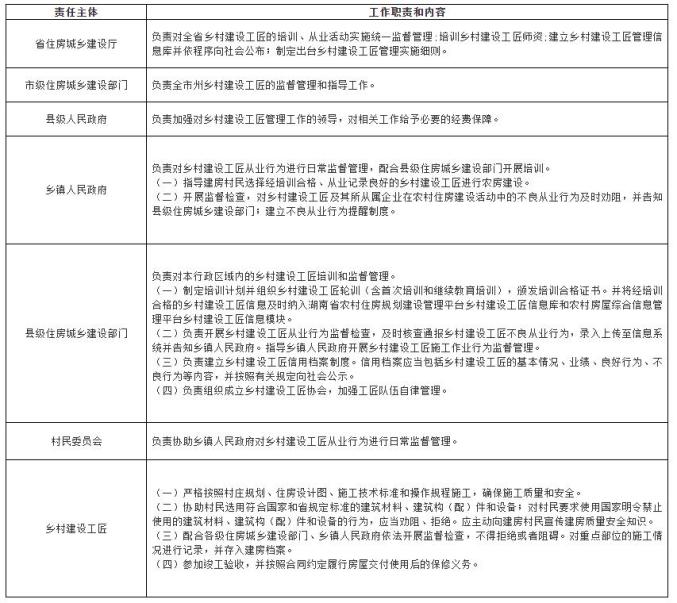 乡村建设工匠管理工作责任清单
