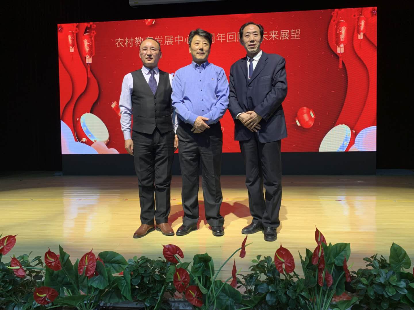 田宝勋常务副主任在中国农村教育发展中心城乡应急教管理办公室十年年庆会上与闫主任(中)康主任合影