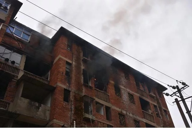 1月24日10时许,湖北省黄石市黄石港区江滩公园附近一拆迁楼着火,大量黑烟从窗口涌出。接到报警后,黄石市花湖消防救援站消防员立即赶赴现场扑救。