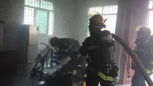 消防员抵达现场后,发现1楼大厅浓烟弥漫,1人正在2楼阳台处躲避浓烟。消防员简单了解情况后确定有2人被困2楼无法下楼。随即,一组消防员对准起火电动车灭火降温;另一组消防员架设两节拉梯到2楼阳台,攀爬上楼搜救,最后成功救出2名被困人员,事故未造成伤亡。