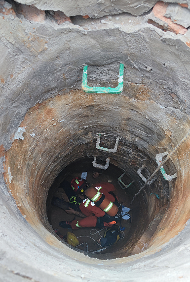 接警后,株洲经济开发区云峰湖政府专职消防救援站立即赶往现场。消防救援人员抵达现场后勘察发现,困人市政管井位于一施工小区围墙外的护坡上,井口敞开,周围未见有防护装置,井深约3米左右,井口直径约1米宽,被困者是一名50多岁的女性,在井底尚有意识,但已受伤,无法动弹,时不时发出痛苦的呻吟。