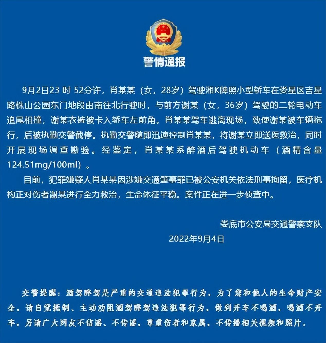 湖南宝马女撞人事件后续,警方通报:醉驾且肇事后逃逸,已被刑拘