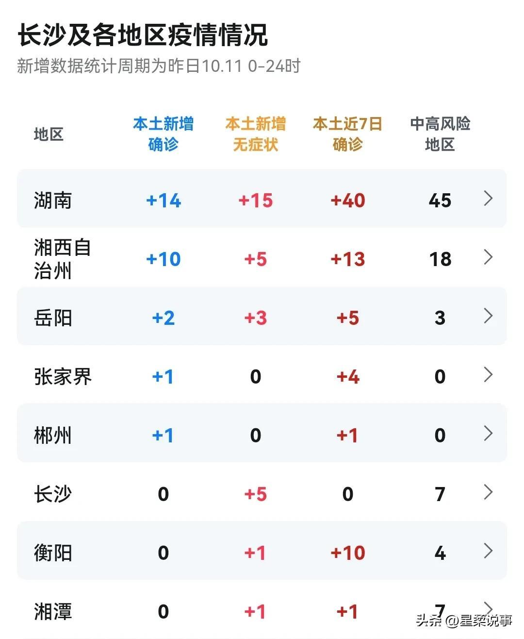 10月10日,湖南新增21例,其中长沙4例,湘西州7例