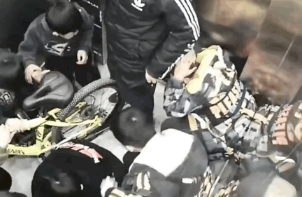 扒电梯门缝试图开门