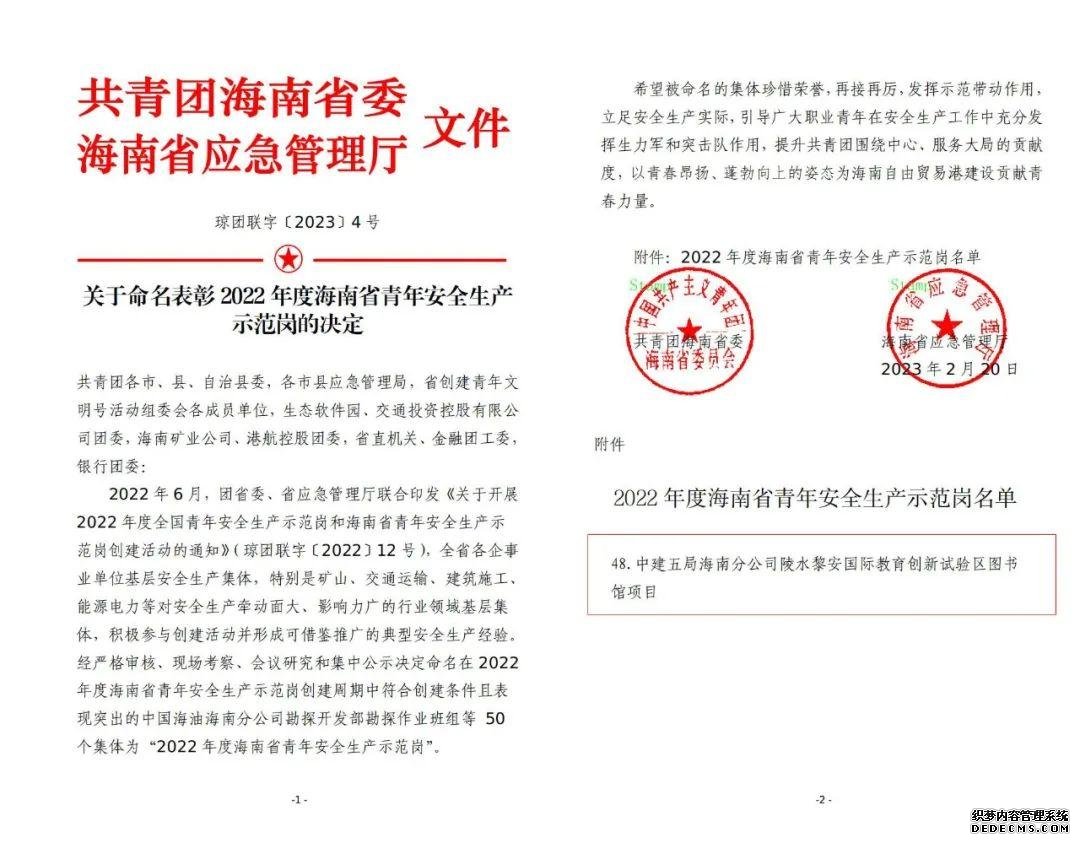 近日,中建五局华南公司海南分公司陵水黎安国际教育创新试验区图书馆项目(以下简称“项目”)获评2022年度海南省青年安全生产示范岗。该项目员工平均年龄27岁,28岁以下青年员工人数占比超70%。