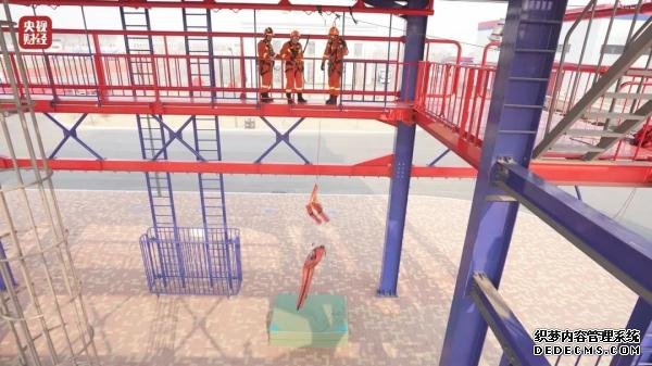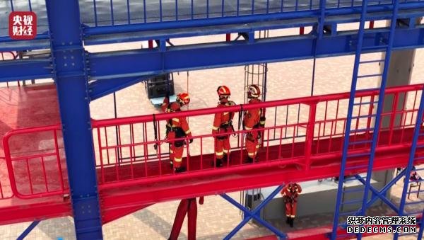 天津市消防救援总队 消防教官:五点式安全带的主要受力点,是我们的腰和腿部,不会快速脱落。
