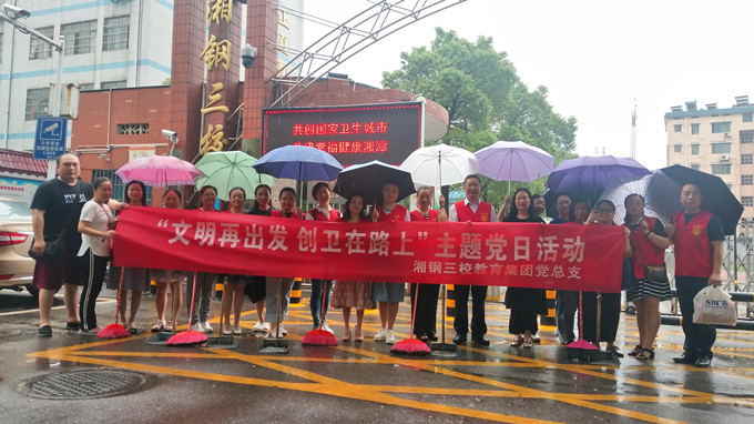 为深化创建湘潭国家级卫生城市,扎实做好环境整治工作,切实发挥党员先锋模范作用,5月26日,湘钢三校教育集团组织全体党员开展“文明再出发,创卫在路上” 主题党日活动。