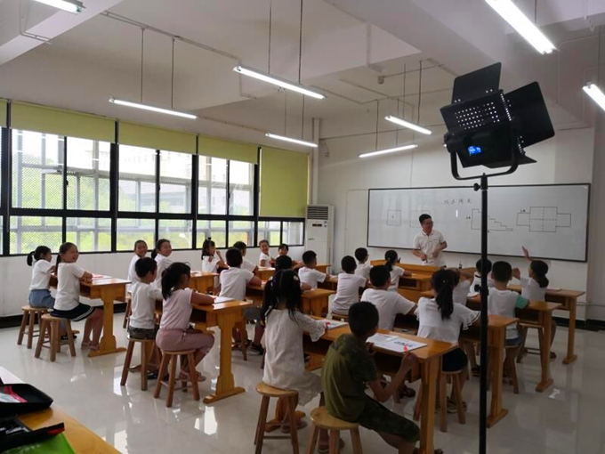 尽管天气炎热,但孩子们不畏酷暑,提前到达活动地点。下午14:30时,活动正式开始。主讲张老师向同学们介绍了此次活动目的和意义,希望同学们能加强对眼睛的保护。活动通过学生上数学课的一个课堂场景进行录制,在装备齐全的摄像机下,孩子们个个挺直腰板,力求能在镜头好好表现一番。课堂上,张老师热情幽默、妙语连珠,孩子们听得津津有味。课题是“巧求周长”,摒除了传统的求图形周长的方法,用生动的例子与奇特的方法,让数学变得有趣易懂。同时,张老师总是提醒书写姿势不正确的孩子,注意坐姿和看书的距离。