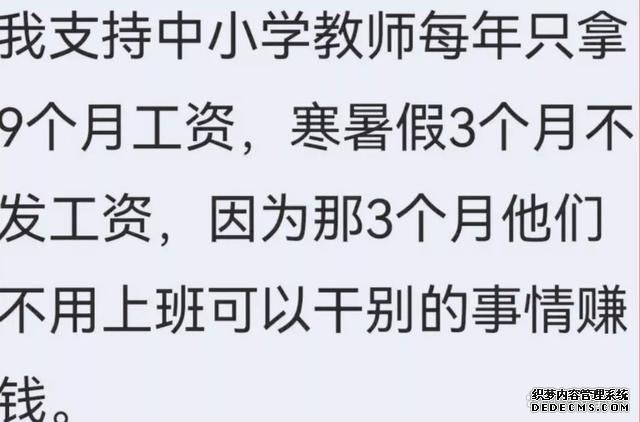 随着互联网的发展以及经济水平的提高,手机已不再是奢侈品,人人都是冲浪达人。因此越来越多的人在网上发声,呼吁取消教师的编制身份以及寒暑假,也跟公务员一样改为朝九晚五。