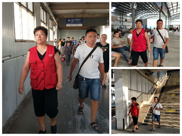 2019年8月12日,在永州火车站月台见到孙晓平正在送盲人上火车,笔者当场用相机抓拍到这个瞬间的感人画面。