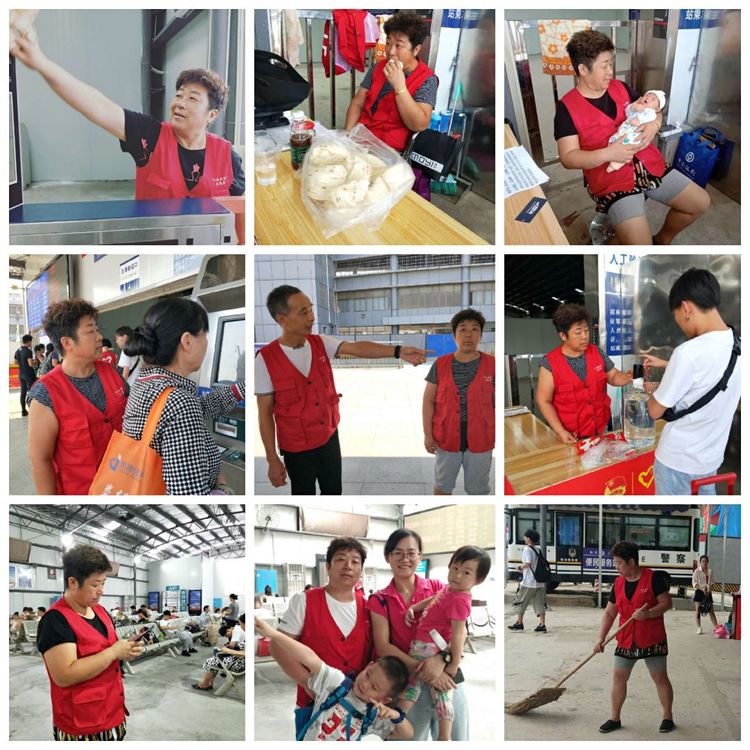 在永州火车站,领导说“孙大姐在永州火车站是名人了,职工们都认识她,在她的带动下,志愿者们在高温下服务旅客,个个汗流夹背,为了重点旅客的平安出行,感到快乐”。