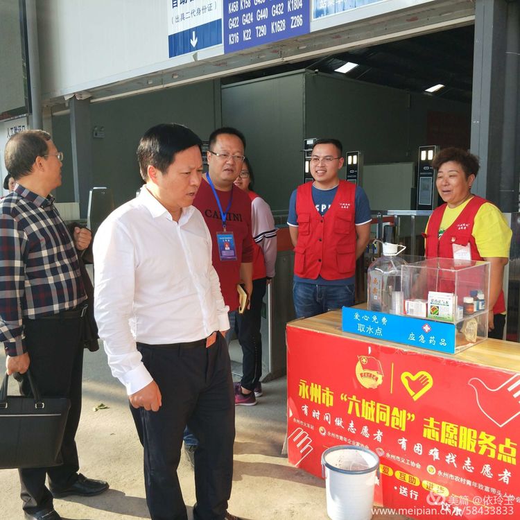 火车站是永州的窗口,志愿者为旅客提供服务这是社会的正能量,有助于永州市”六城同创“。火车将旅客平安送往祖国各地,旅客把红马甲身影记在心里。