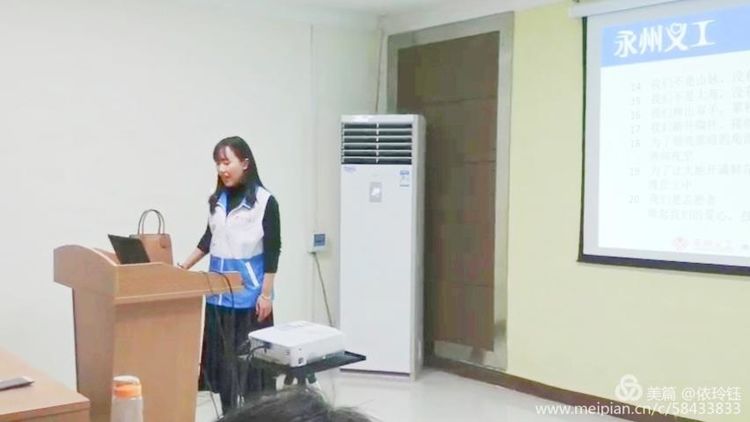 刘老师认真准备了ppτ课件,向大家讲解了国际、国内和永州市的义工发展历史,讲解了义工的概念、义工的礼仪、义工的要求、义工的条件等有关义工的基本知识,介绍了永州义工的先进人物和典型事例。