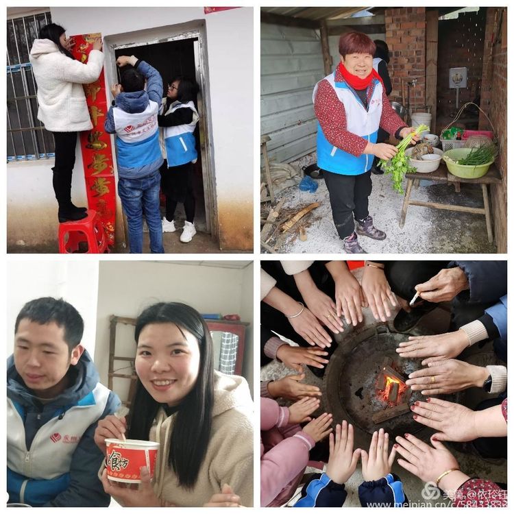 义工帮老人贴对联、做年夜饭