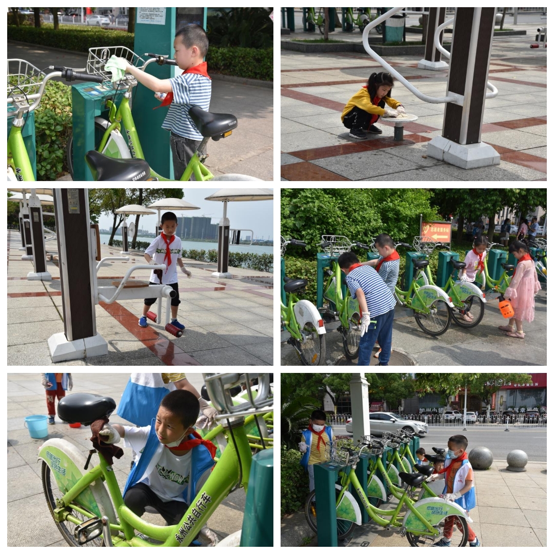 最后,红领巾志愿者们走上街头,在各自家长的帮助指引下,认真开展志愿服务。有的为路人发放宣传单,提醒路人“讲究个人卫生,减少外出和聚会,不能随意摘下口罩”;有的为公共自行车、运动设施充分消毒,号召大家“爱惜公共设施,远离手机网络,走向运动场,加强身体锻炼”;有的沿河边道路围栏外捡拾垃圾并进行分类,倡导“保护环境就是保护我们自己”的理念意识。