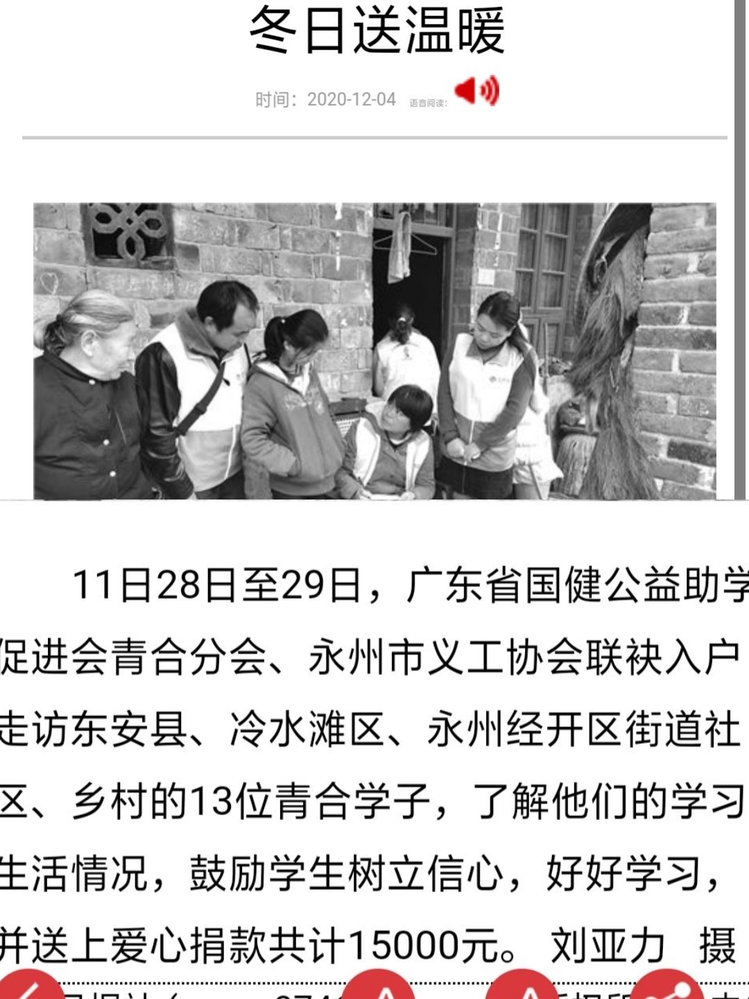 1日28日~29日,广东省国健公益助学促进会青合分会、永州市义工协会联袂冒着严寒走访受助青合学子,送上志愿者的关爱,送上社会大家庭的温暖。