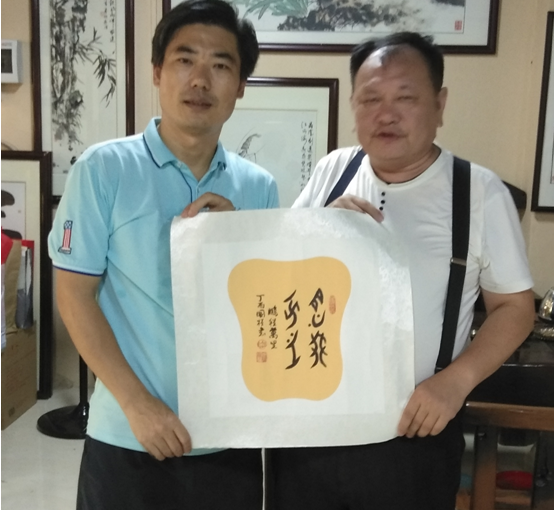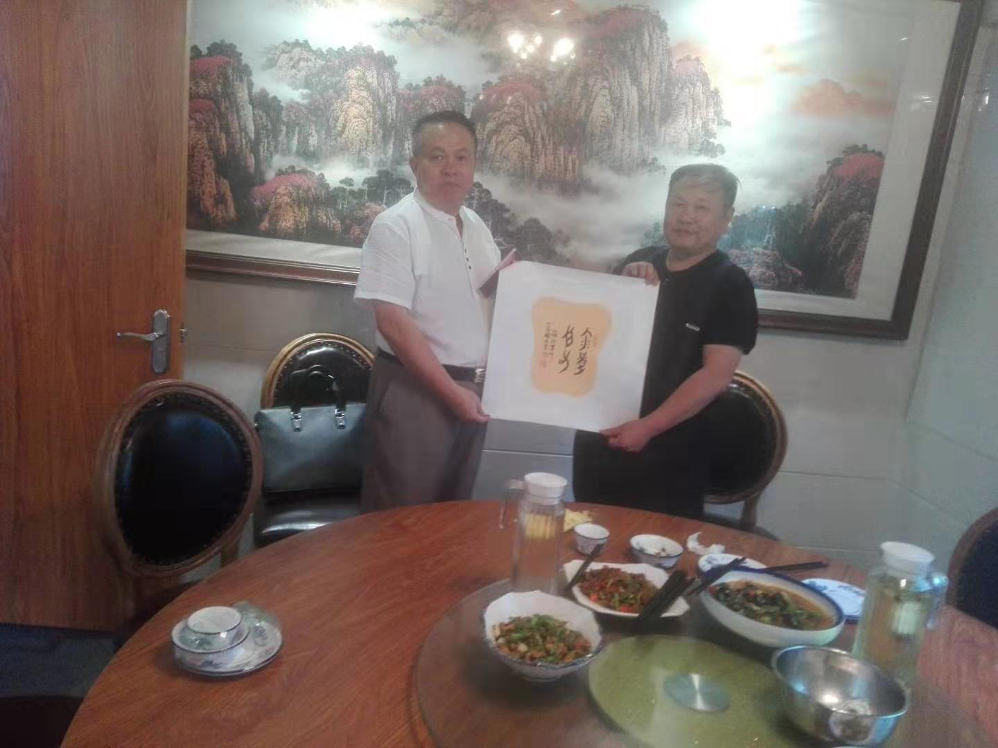 杨老师给广东永州商会法人代表、执行会长秦保国赠送著名国礼书法家张国权女书作品。