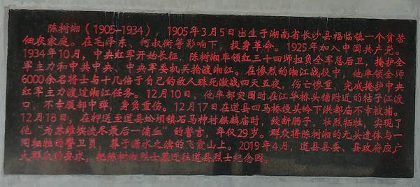2019年4月,道县县政府应广大群众的要求,陈树湘烈士墓迁往道县烈士纪念园。