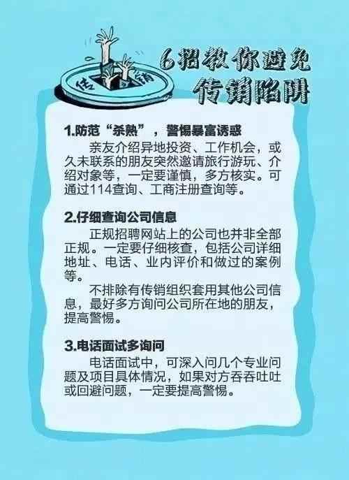 近日,教育部等四部门印发通知,严厉打击、依法取缔传销组织。亲人邀约、相亲、找工作…传销其实就潜伏在我们身边!传销组织都有什么套路?什么特征能认定传销?误入传销该如何自救?34个“黑名单”传销组织+最全防范指南↓↓扩散,务必提高警惕性!