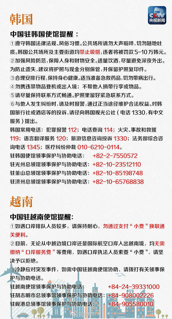 近期进入旅行高峰,外交部和我国驻外使领馆连续发布安全提醒,提醒赴外中国公民注意出行安全。提醒大家,如在国外遇到突发或紧急状况,尽快联系当地警方、中国使领馆,还可联系外交部全球领保与服务应急呼叫中心:+86-10-12308。