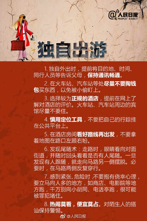 最近发生的空姐遇害案,引起网友强烈关注! 女性安全受侵害时有发生,独自出游、乘网约车、聚会等情况都有可能发生危险。选择正规酒店入住、慎用定位工具、不打黑的士、乘网约车坐后排......姑娘们牢记这些安全贴士,关键时刻能救命!