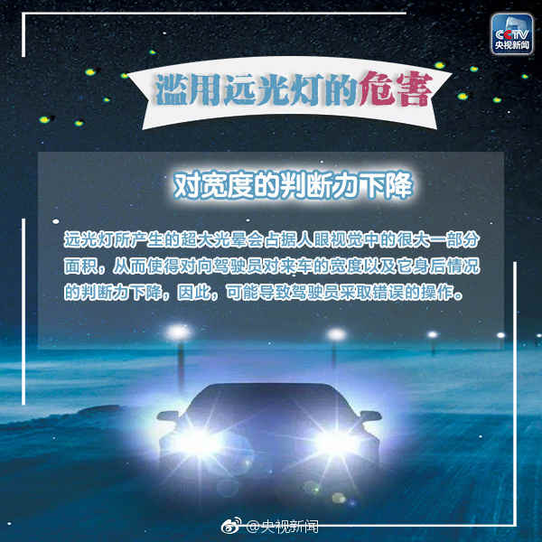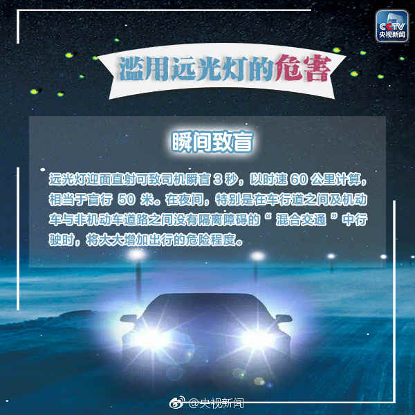 滥用远光灯会使驾驶员瞬间致盲,降低人对速度、距离、宽度的判断力下降,因为这些原因而产生的交通事故不在少数。司机如何正确使用车灯?当行车途中遇到来车的远光灯时又该怎么办?为了你和他人的安全,请正确使用远光灯!