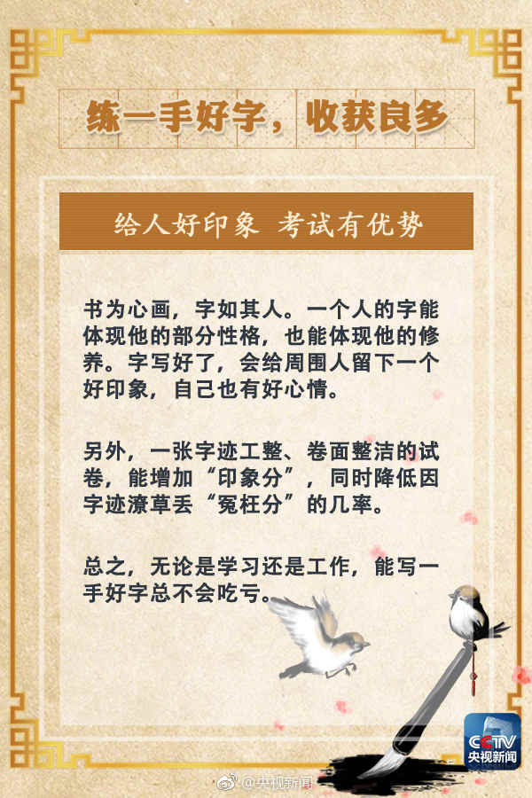 日前,毛笔手写录取通知书走红网络。一纸好字,带着墨香,令人过目不忘;练一手好字,会成为你一生的财富。你的字写得怎么样?想不想练好字?看↓