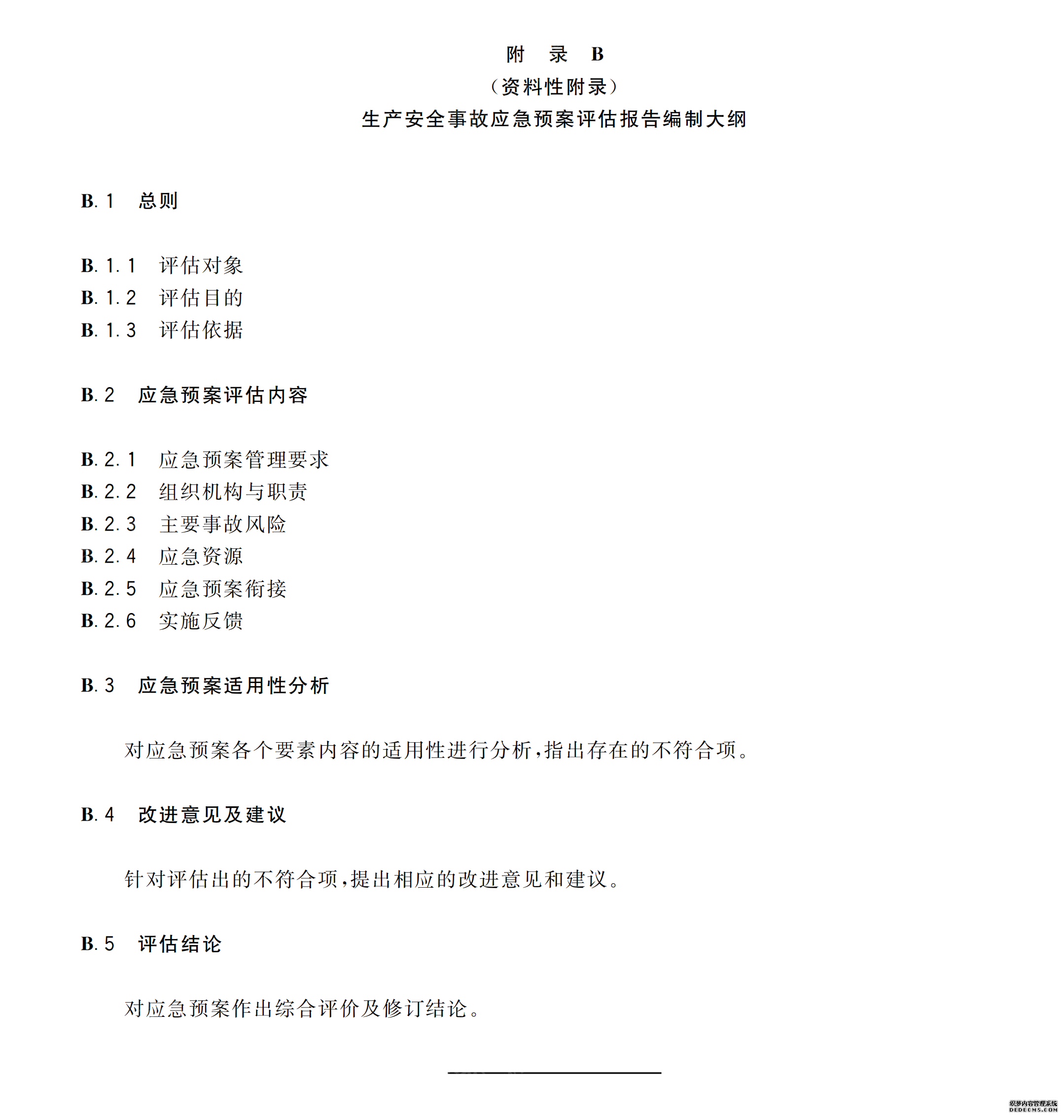7.1 生产安全事故应急预案评估报告编制大纲参见附录B。