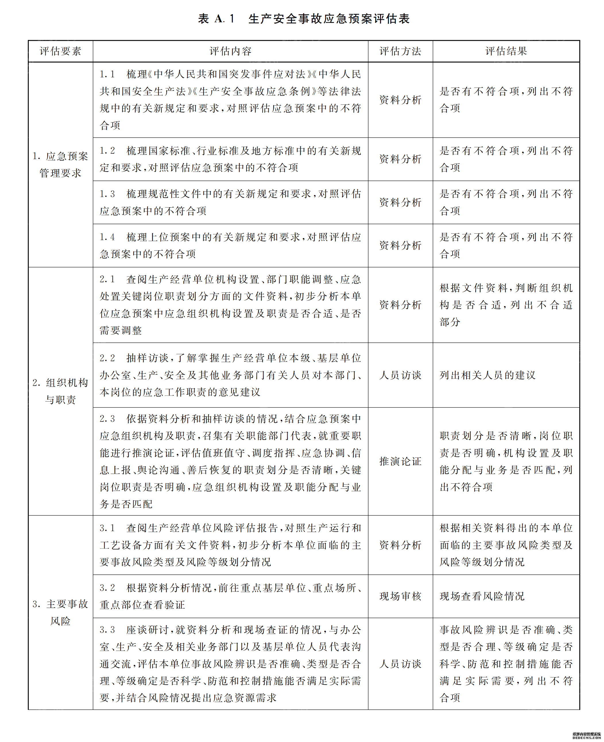 5.3.2 生产安全事故应急预案评估表参见附录A。